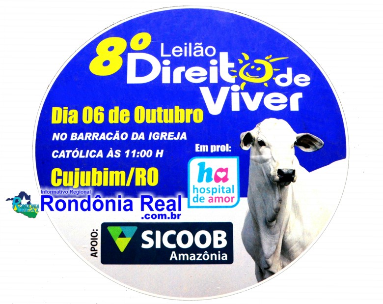 A sociedade em Geral de Cujubim lançam no dia 06 de Outubro de 2019 a 8ª Edição do Leilão Direito de Viver em prol do Hospital do Amor da Amazônia em Cujubim, de acordo com a Comissão Organizadora o evento terá inicio a partir das 11:00 horas no salão paroquial anexo à matriz. O Leilão Direito de Viver ja virou tradição pois acontece todos os anos e destina recursos para o Hospital do Câncer ao qual ja tem acolhido mais de 89 pacientes do município de Cujubim.