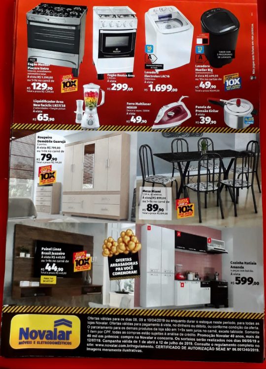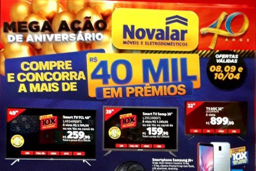 Mega Promoção de aniversário de 40 anos da Novalar; Venha conferir! 7 abril, 2019 A Novalar está fazendo 40 anos, e nessa segunda feira, 08, trás uma mega promoção, você não pode perder. Comprando você ainda concorre a mais de R$ 40 mil em prêmios