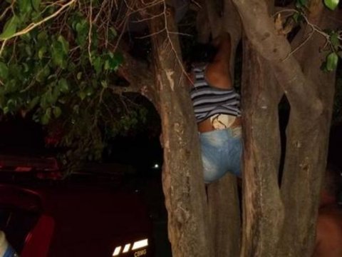 Mulher fica presa em árvore ao tentar invadir casa de ex